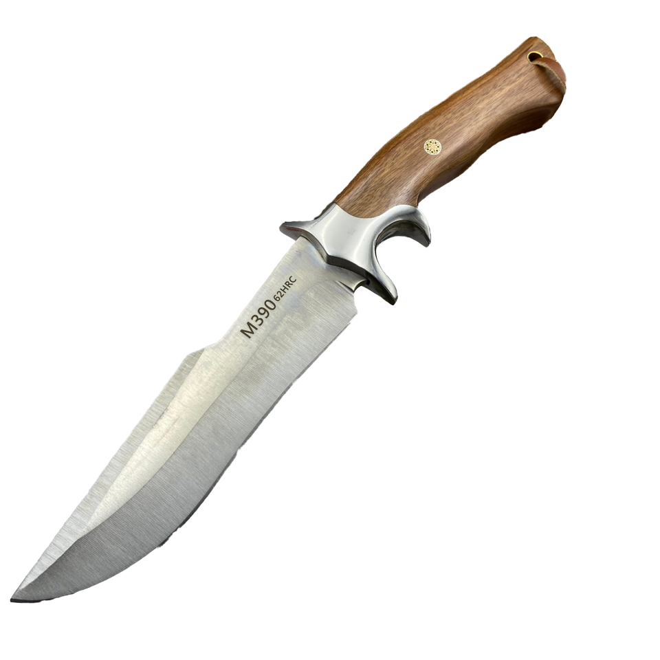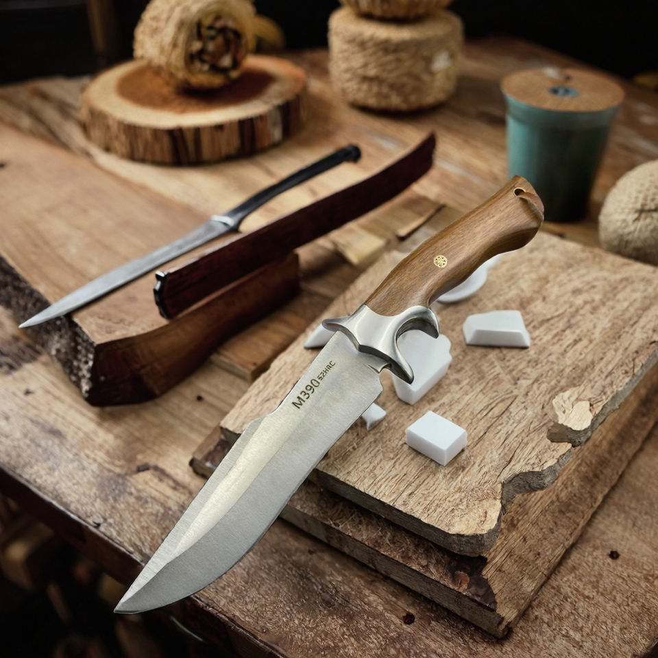 มีดเดินป่ากลางแจ้งคุณภาพสูง ด้ามไม้ ปลายหยดน้ำ ขนาด 18.5 ซม. สำหรับการเดินป่า เอาตัวรอด และล่าสัตว์