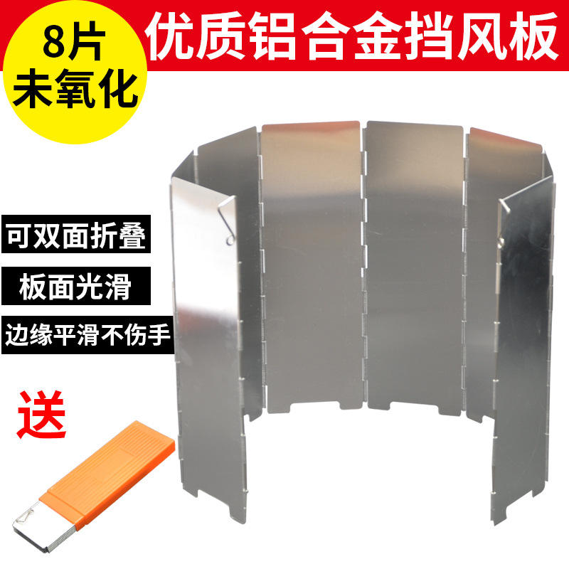 เตาแคมป์ปิ้งกลางแจ้ง แผ่นบังลม อลูมิเนียมอัลลอยด์ พับได้ น้ำหนักเบา พกพาสะดวก กันลม 8 ชิ้น พร้อมกล่อง