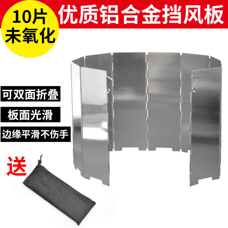 เตาแคมป์ปิ้งกลางแจ้ง แผ่นบังลมอลูมิเนียมอัลลอยด์ 10 ชิ้น พับได้ พกพาสะดวก กันลม น้ำหนักเบา พร้อมถุงผ้า