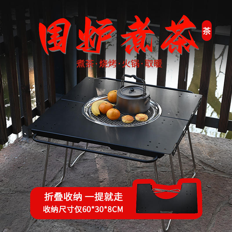 โต๊ะตั้งแคมป์กลางแจ้งพร้อมเตาย่าง 60 ซม. สีดำ เตาไฟพับได้สำหรับปิคนิคบาร์บีคิว