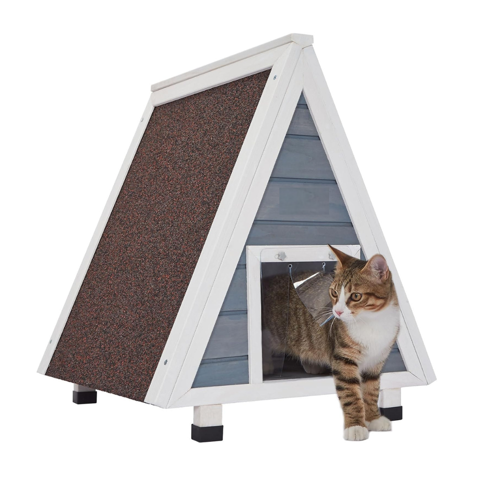 บ้านแมวกลางแจ้งทนต่อสภาพอากาศพร้อมประตูหนีบ้านสัตว์เลี้ยงกลางแจ้งในร่มสำหรับสัตว์เล็กทำเฟอร์นิเจอร์ hugi (เวียดนาม)
