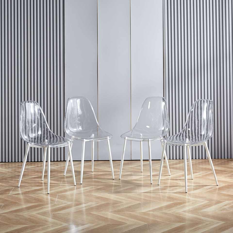 เฟอร์นิเจอร์ร้านอาหารกลางแจ้ง เก้าอี้ใส โครงโลหะ เก้าอี้รับประทานอาหารสำหรับโรงแรม
