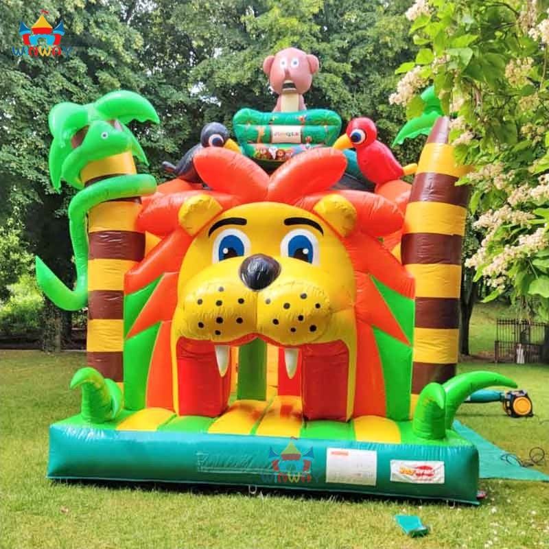 บ้านลมเป่าลมสำหรับเด็กเล่นกลางแจ้ง ลายสัตว์ป่าซาฟารี ลายสิงโต ขนาด 5x5 เมตร ผลิตจากพีวีซีเชิงพาณิชย์ เป็นมิตรกับสิ่งแวดล้อม ติดตั้งง่าย เหมาะสำหรับงานปาร์ตี้เด็ก