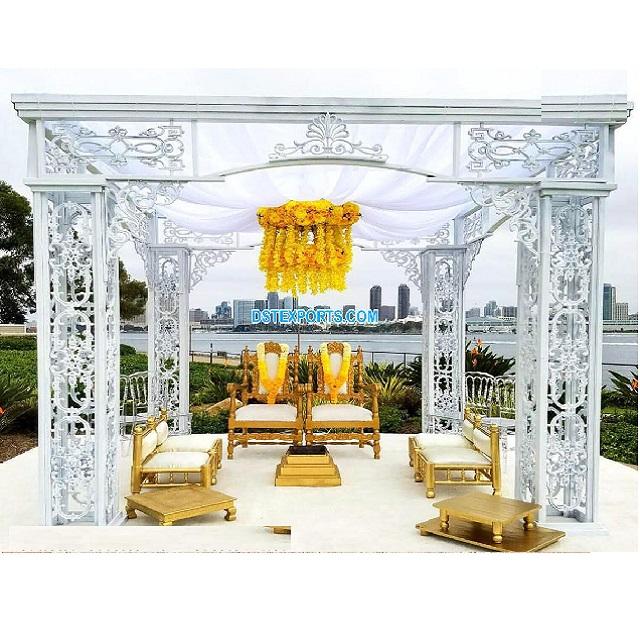 Outdoor Contemporary Wedding Metal Mandap Setup