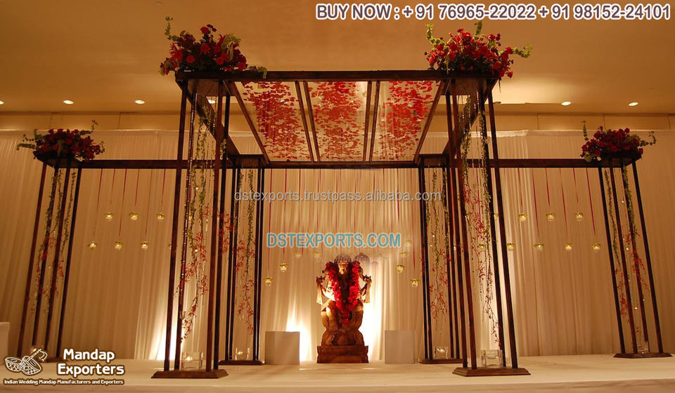 การตกแต่ง Mandap โลหะงานแต่งงานร่วมสมัยกลางแจ้งการตกแต่ง Mandap โลหะริมชายหาดที่ทันสมัยการตกแต่งเทพนิยายการจัดงานแต่งงานการตกแต่งโลหะแมนเดป