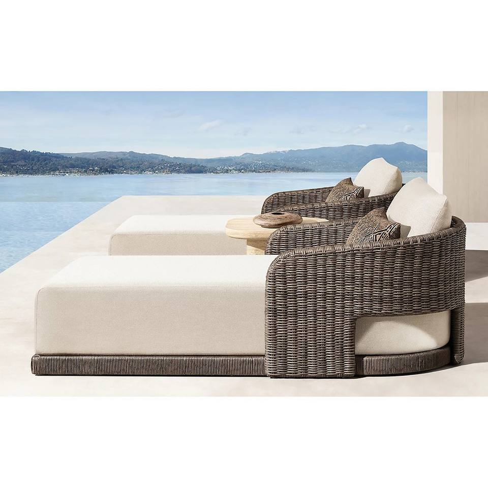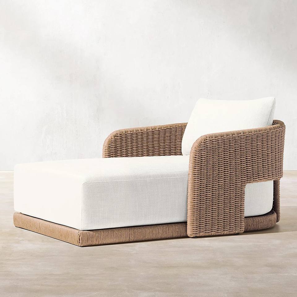 เก้าอี้พักผ่อนหวายกลางแจ้งสำหรับสวน วิลล่า โรงแรม ระเบียง สระว่ายน้ำ ชายหาด ดีไซน์ยุโรปเหนือ โครงอะลูมิเนียม