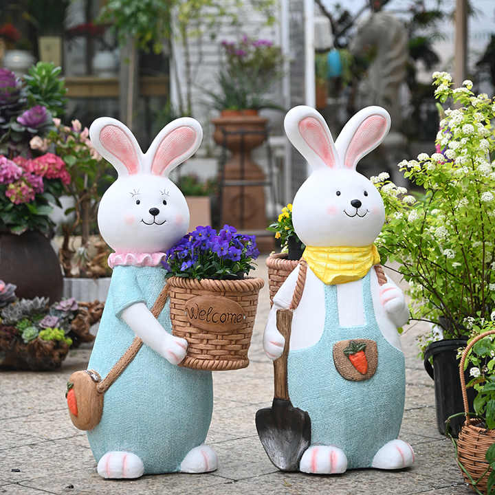รูปปั้นสัตว์รูปกระต่ายการ์ตูนน่ารักสุดสร้างสรรค์ใช้กลางแจ้งของตกแต่งสวนสวนสวนพืชโรงเรียนอนุบาลมุมระเบียงลาน