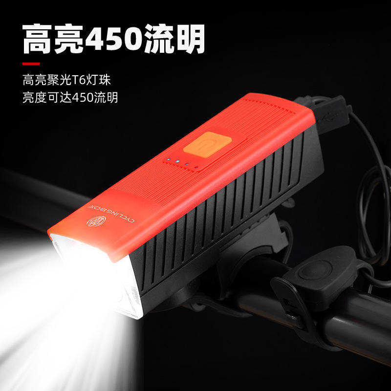 ไฟหน้าจักรยานสำหรับขี่กลางแจ้ง สีแดง-ฟ้า ใช้พลังงานจากแบตเตอรี่ ความเข้มแสงสูง พร้อมไฟกระดิ่งสำหรับจักรยานเสือหมอบ อุปกรณ์เพื่อความปลอดภัย