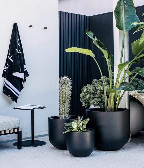 กระถางดอกไม้สำหรับตกแต่งสวนกลางแจ้งภาชนะปลูกต้นไม้ขนาดใหญ่น้ำหนักเบากันน้ำทันสมัยสำหรับระเบียงลานบ้าน