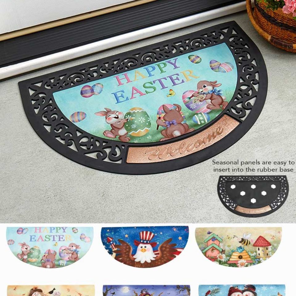 ถาดรองเท้าพรมเช็ดเท้าลายม้วนตกแต่งภายนอกอาคารตามฤดูกาล