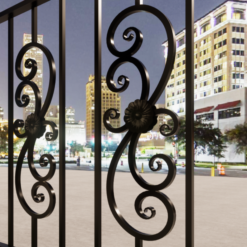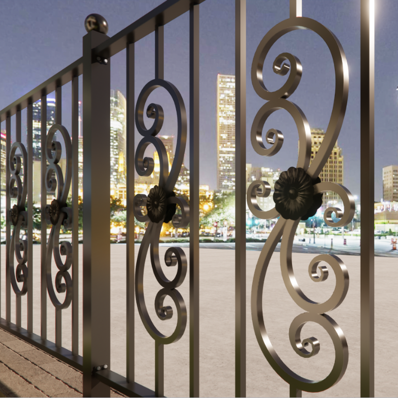 แผงราวบันไดเหล็กดัดสำหรับตกแต่งกลางแจ้งออกแบบด้วยเหล็กขึ้นรูปด้วยมือสำหรับระเบียงที่ทันสมัยและติดตั้งตามสั่ง