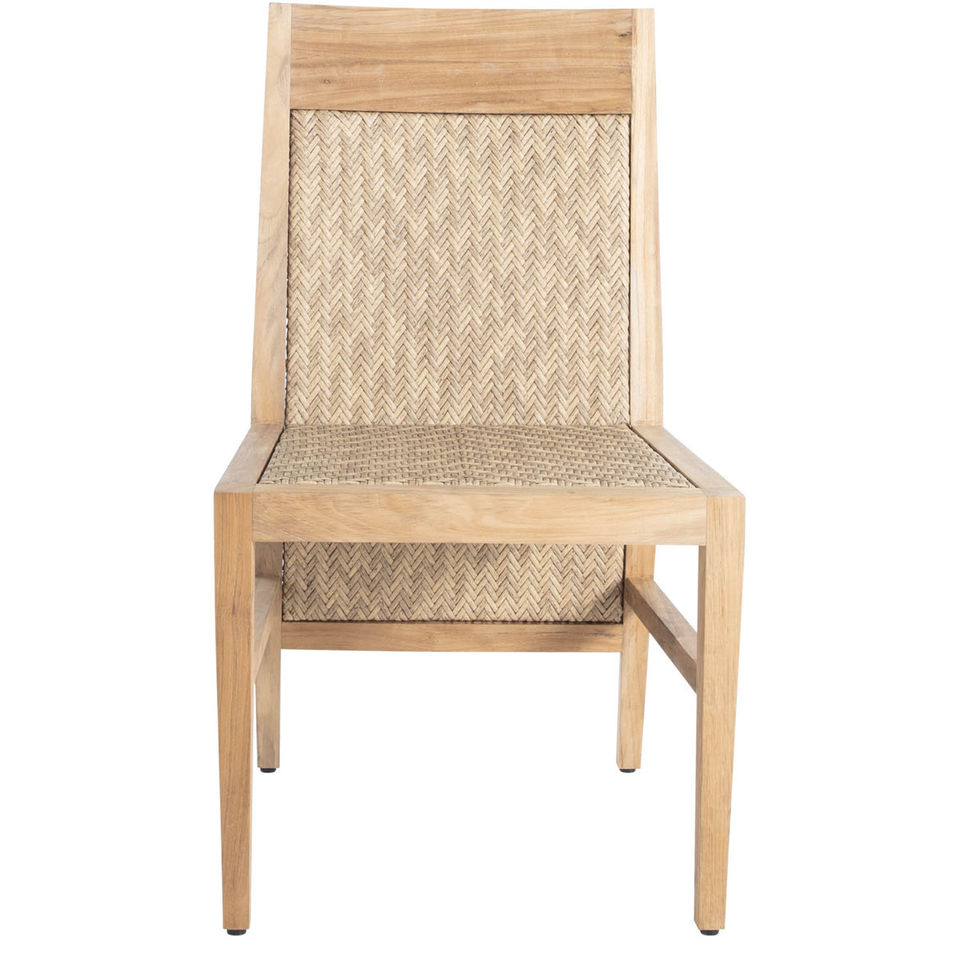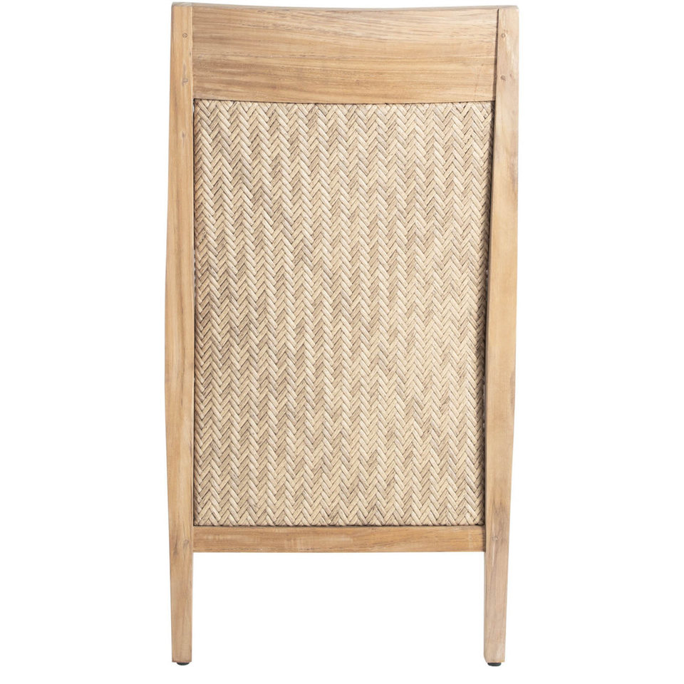 เก้าอี้รับประทานอาหารกลางแจ้งที่มีหวายทอและกรอบไม้