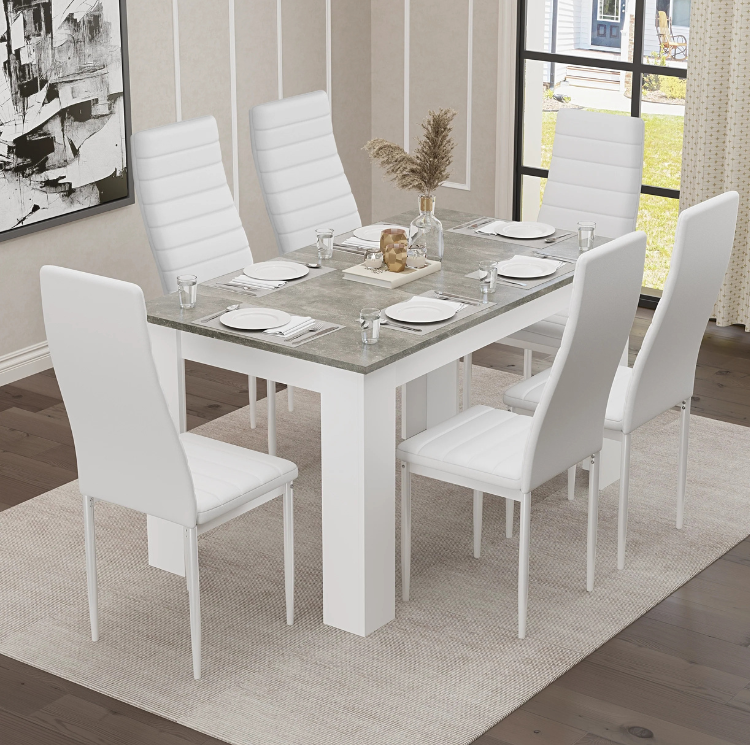 คำอธิบาย:ชุดรับประทานอาหารกลางแจ้งพร้อมโต๊ะ 1 ตัวและเก้าอี้ 6 ตัว