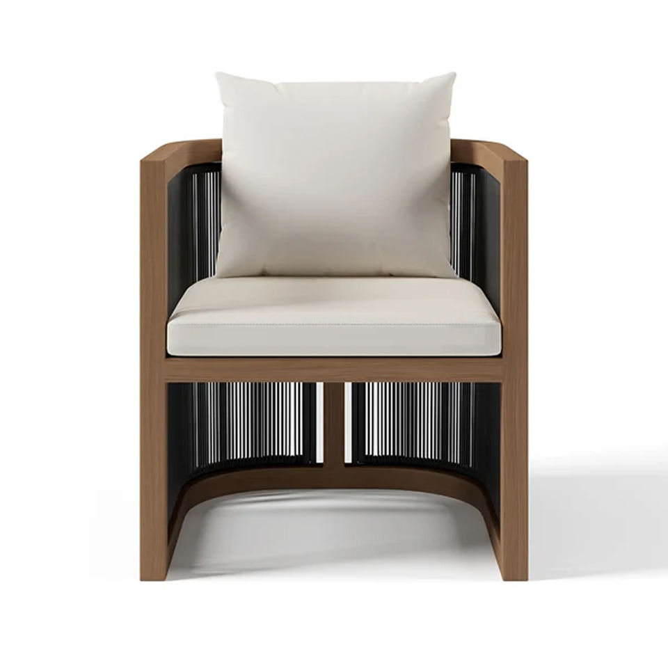 HMS เก้าอี้รับประทานอาหารหวายเทียมสีขาวและน้ำตาลชุดสวนมีสไตล์