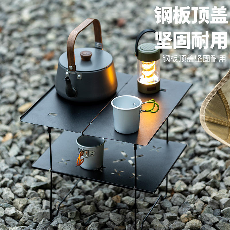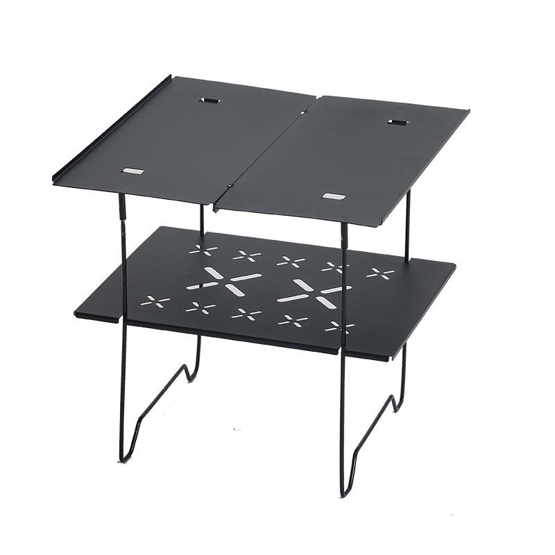 โต๊ะเหล็กพับได้สองชั้นสำหรับใช้งานกลางแจ้ง พกพาสะดวกสำหรับตั้งแคมป์ปิกนิก สีดำ สีเขียวทหาร สีกากี สำหรับใช้งานกลางแจ้ง