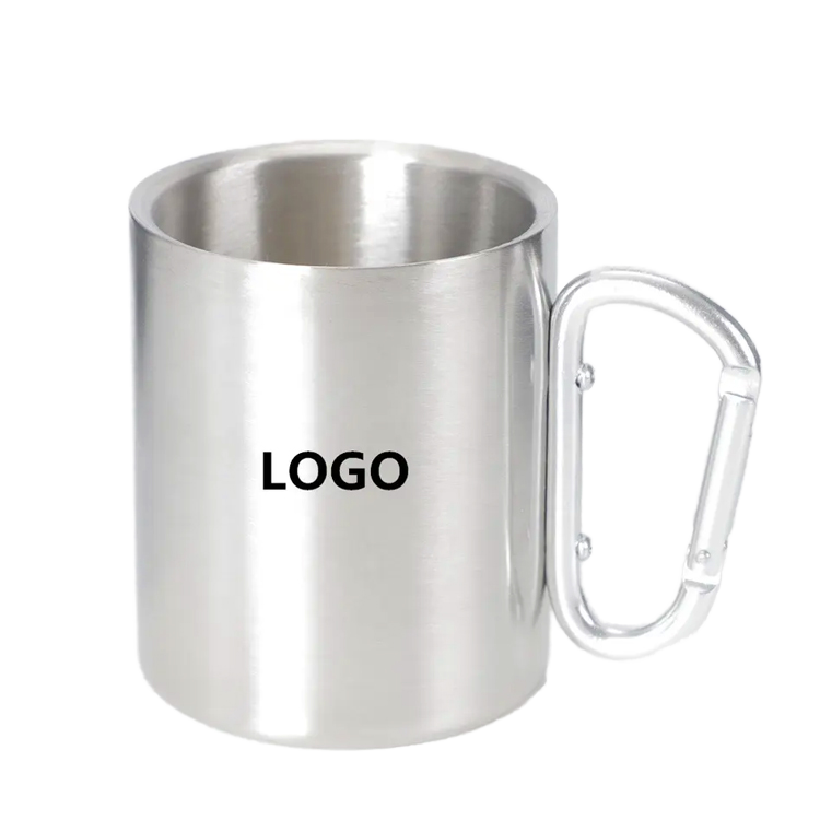 แก้วสแตนเลสสองชั้นแบบพกพา พร้อมคาราไบเนอร์ ขนาด 220 มล. 300 มล. 8 ออนซ์ 10 ออนซ์ สำหรับเดินทาง แคมป์ปิ้ง และเดินป่า