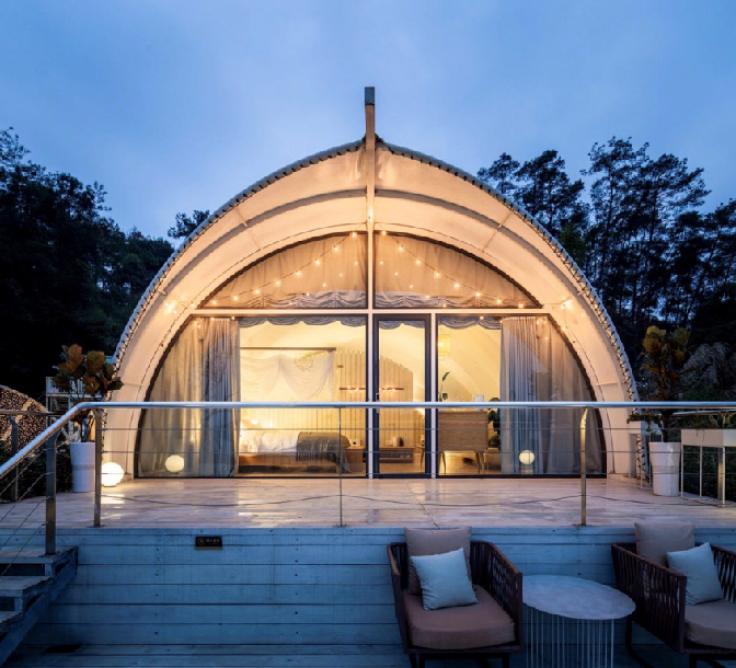 โรงแรมหรูรีสอร์ทเชิงนิเวศกลางแจ้ง Glamping Beach Camping รีสอร์ทหรูโรงแรมพักผ่อนเต็นท์รูปร่างเปลือกหอยพร้อมห้องน้ําขาย