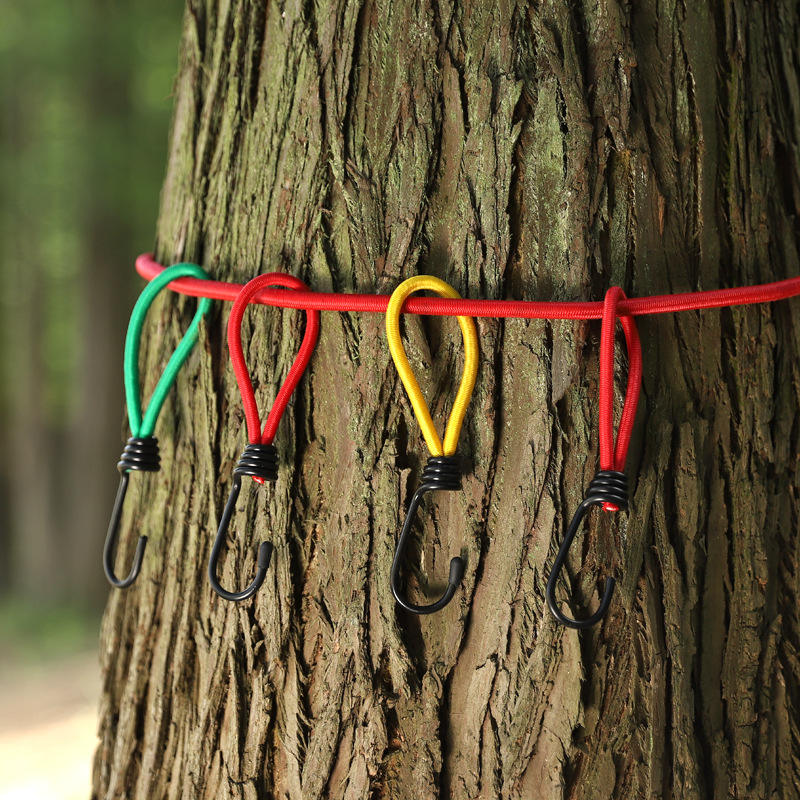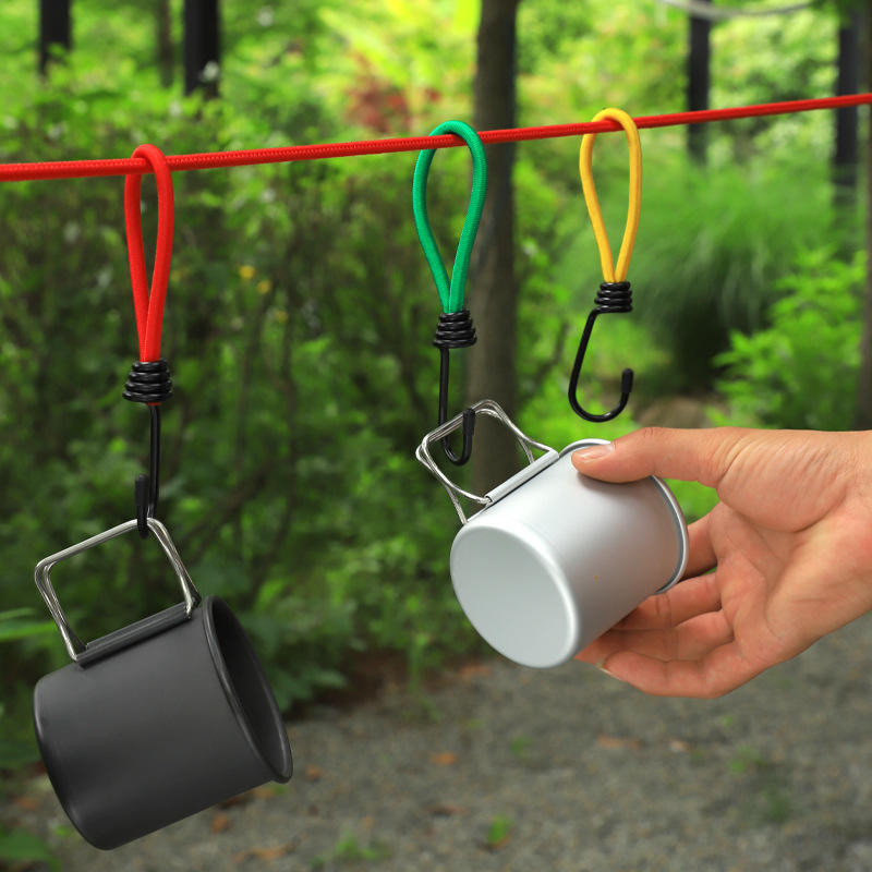 เชือกยางยืดสำหรับใช้งานกลางแจ้งพร้อมตะขอ ขนาด 6 มม. ทำจากไนลอน ยาว 15 ซม. เชือกอเนกประสงค์สำหรับตั้งแคมป์ ใช้สำหรับยึดเต็นท์ ผ้าใบกันน้ำ และเสาปักพื้น