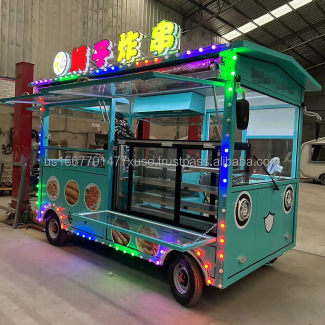 เครื่องพ่วงอาหารเคลื่อนที่สำหรับขายปลีกขนมขบเคี้ยวผลิตภัณฑ์นมขนมฮอทด็อกทำจากบาร์บีคิวทำจากข้าวโพด
