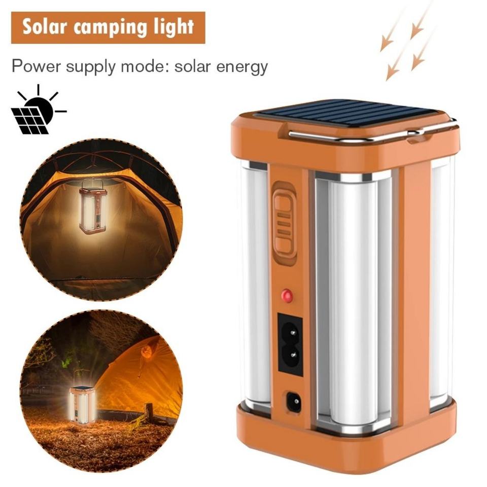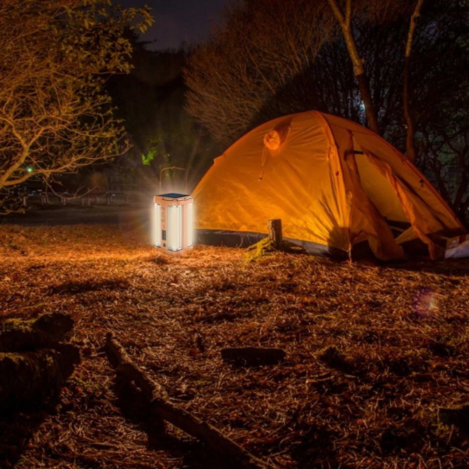 โคมไฟฉุกเฉินพกพาสำหรับใช้งานกลางแจ้ง 4 ด้าน ไฟกลางคืนแบบชาร์จได้ ไฟฉาย โคมไฟเต็นท์ ไฟแคมป์ปิ้ง LED พลังงานแสงอาทิตย์ สำหรับการเดินป่า