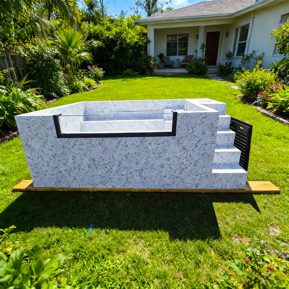 สระว่ายน้ำสำเร็จรูปขนาดใหญ่หรูหราจากโรงงานกลางแจ้ง ทำจากไฟเบอร์กลาส พร้อมหน้าต่างอะคริลิก แบบตู้คอนเทนเนอร์ขนส่งขนาด 20 ฟุต 40 ฟุต
