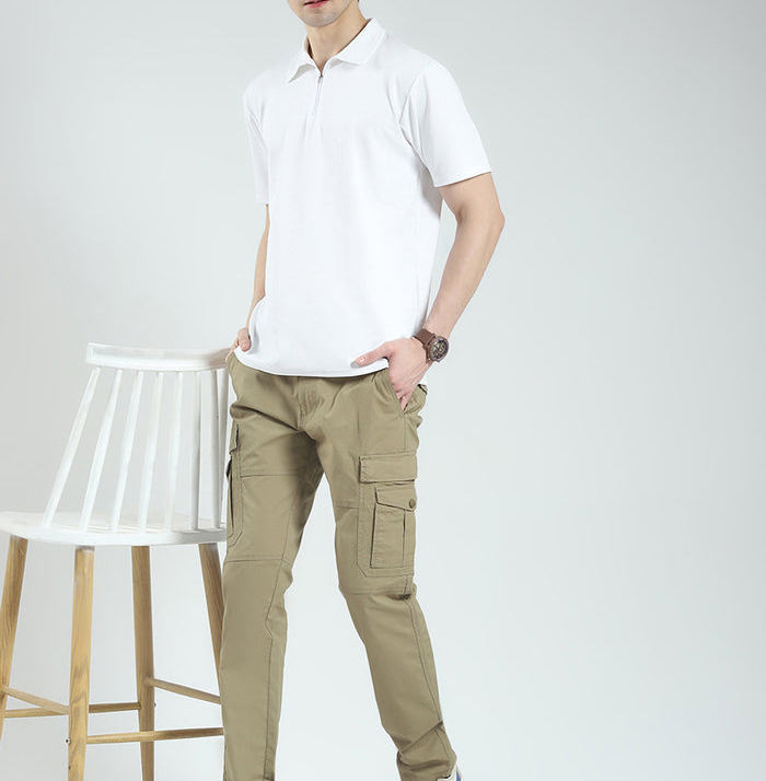กางเกงคาร์โก้ผู้ชายแฟชั่นกลางแจ้งกางเกงผู้ชายทรงตรงลายทางแนวสตรีทแวร์มีกระเป๋าหลายกระเป๋าใส่สบายกางเกงผู้ชายซักได้