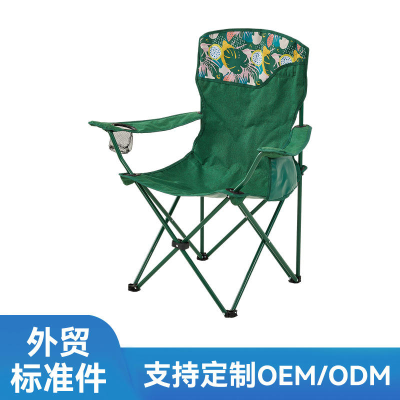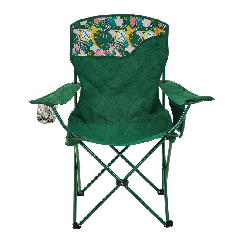 เก้าอี้พับกลางแจ้งพิมพ์ลายกรอบอลูมิเนียมสีเขียวเข้มสำหรับใช้ในสวนแคมป์ปิ้งปิกนิก