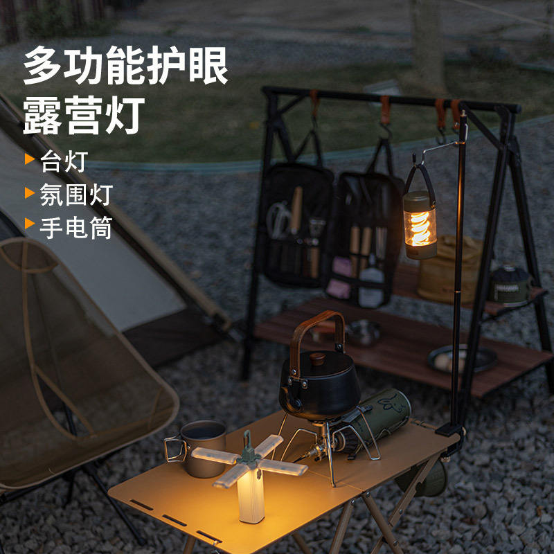 โคมไฟพับได้กลางแจ้งแบบสี่ใบพัด แบตเตอรี่แบบชาร์จไฟได้ โคมไฟตั้งแคมป์ แหล่งกำเนิดแสงสีขาว หลอดไส้