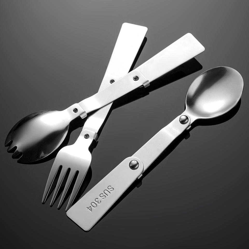 Outdoor Folding Spoon Fork Set 304 Stainless Steel Camping Utensil Compact Portable For Travel And Hiking