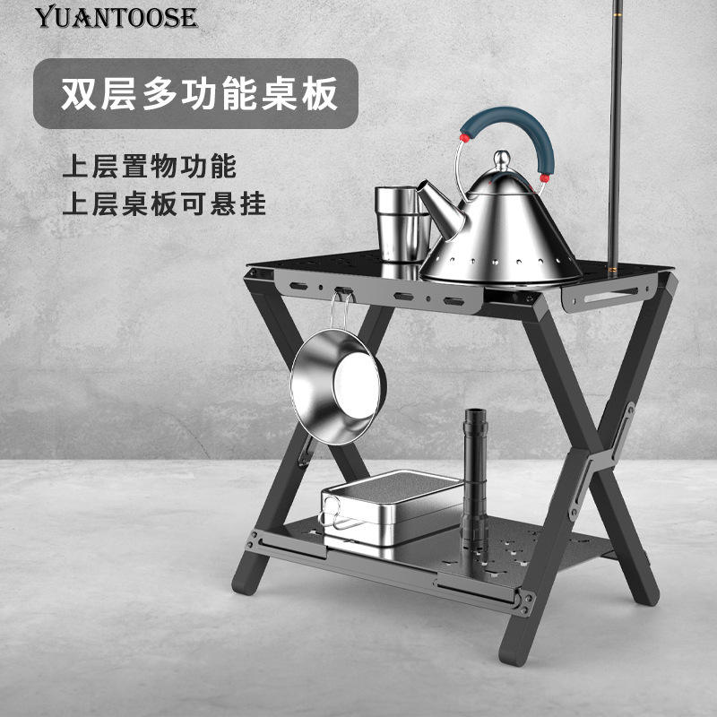 Outdoor Folding Table Aluminum Alloy Black Rectangular Double Layer Portable Camping Table MFA 01