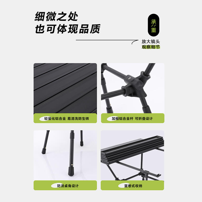 โต๊ะพับกลางแจ้งอลูมิเนียมอัลลอยด์ฐานสี่เหลี่ยมแบบมินิมอลดีไซน์แบบพกพาแบบยืดหดได้สำหรับปิกนิกบาร์บีคิวการเดินทางบนถนน