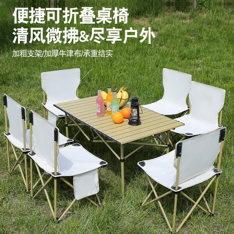 ชุดโต๊ะเก้าอี้พับได้สำหรับใช้งานกลางแจ้ง โต๊ะปิกนิกแคมป์ปิ้งแบบพกพา ทำจากอลูมิเนียมอัลลอย พับเก็บได้ รับน้ำหนักได้มาก