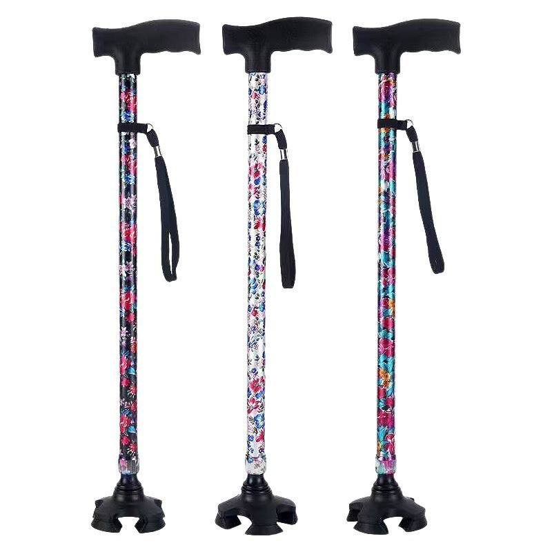 ไม้เท้าพับได้สำหรับเดินกลางแจ้ง ปลายยางกันลื่น ไม้เท้าเดินป่าแบบพับได้สี่ขา ปรับความยาวได้ สำหรับผู้สูงอายุ