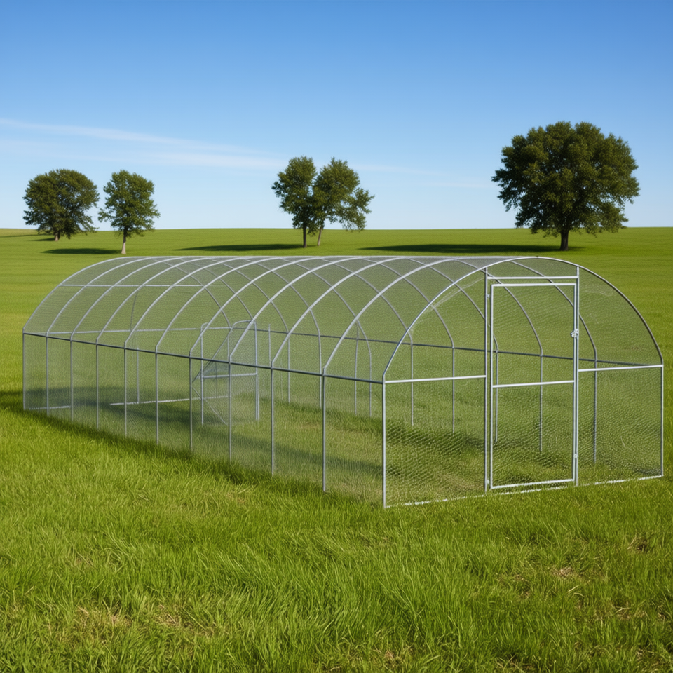 กรงไก่เหล็กชุบสังกะสีกลางแจ้ง ขนาด 9.8x32.8x6.6 ฟุต สำหรับเลี้ยงสัตว์ปีก