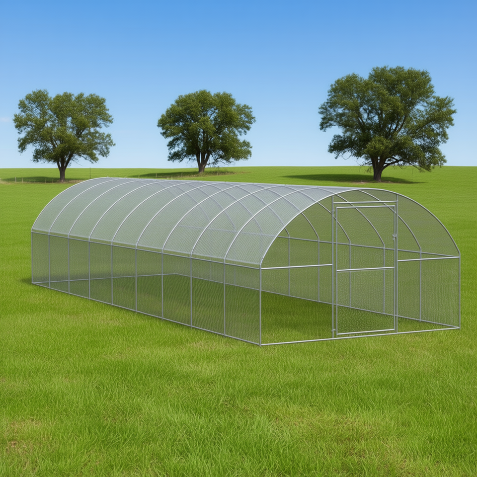 กรงไก่เหล็กชุบสังกะสีกลางแจ้ง ขนาด 9.8x32.8x6.6 ฟุต สำหรับเลี้ยงสัตว์ปีก