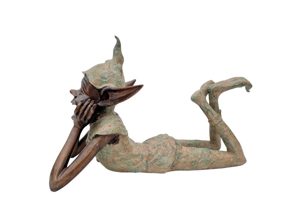 Outdoor Garden Decor Bronze Casting Sitting Elves Statue Sculpture
