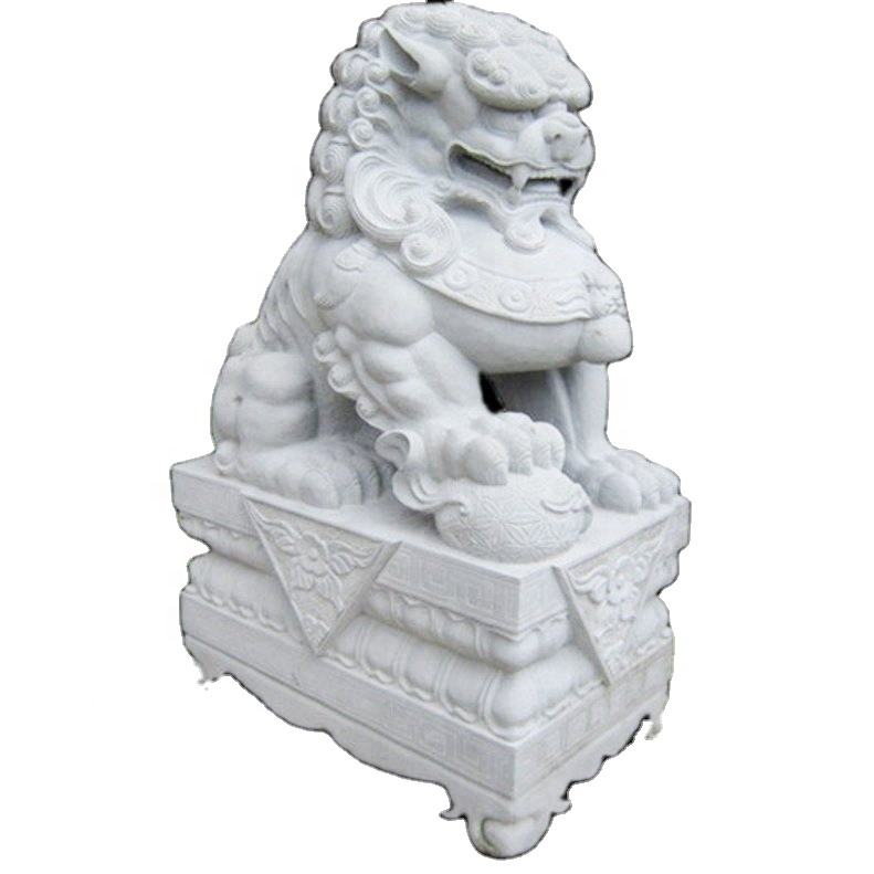 รูปปั้นสิงโตหินธรรมชาติตกแต่งสวนกลางแจ้งรูปปั้นสุนัข Foo จีนขนาดเท่าชีวิตจริง