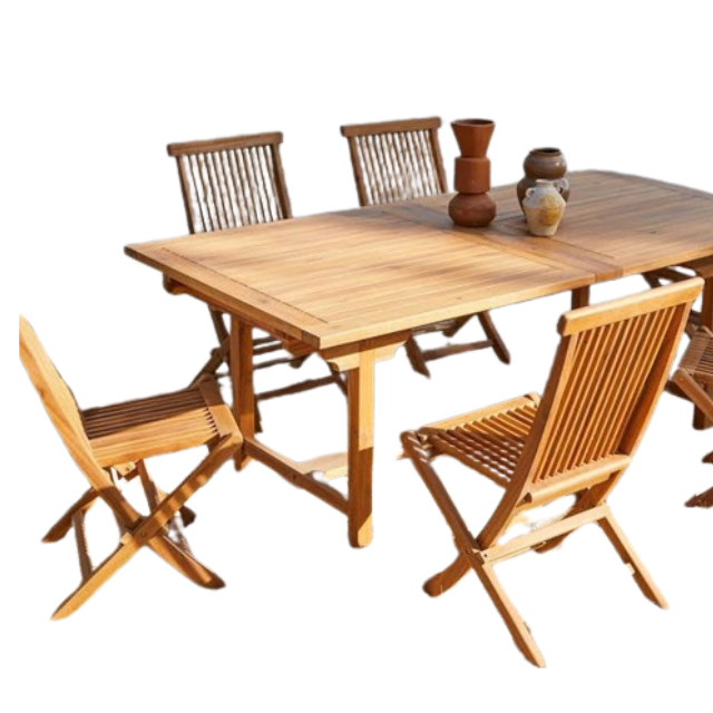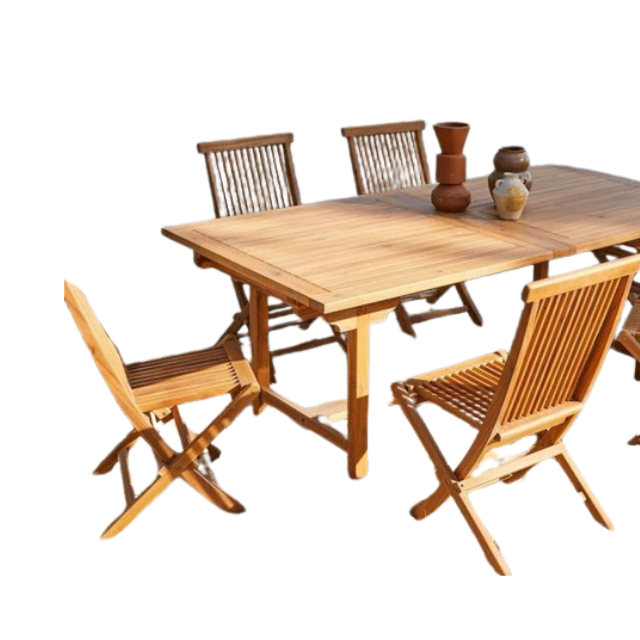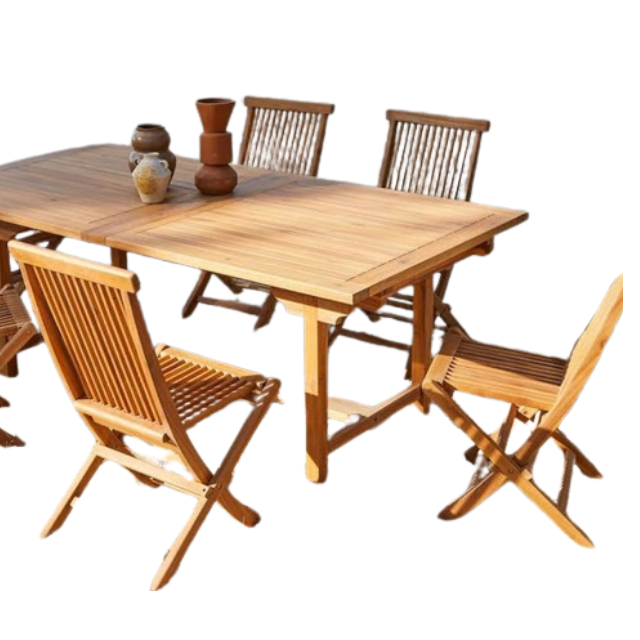 Outdoor Garden Furniture Teak Garden Table Extend with 6 Folding Teak Wooden Chairs Wholesale Price