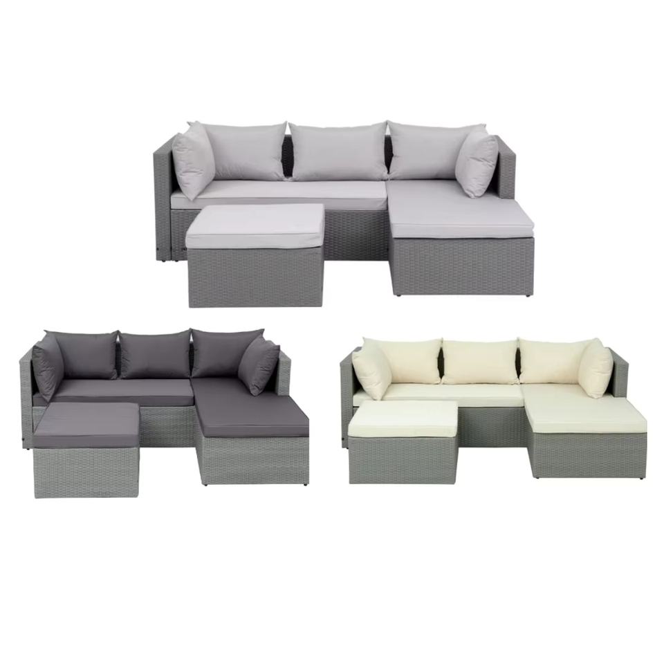 ชุดโซฟาหวายเข้ามุมพร้อมโต๊ะกาแฟทำจาก PE โซฟาเหล็กพร้อมเก้าอี้กลางแจ้งสำหรับลานสวนกลางแจ้ง