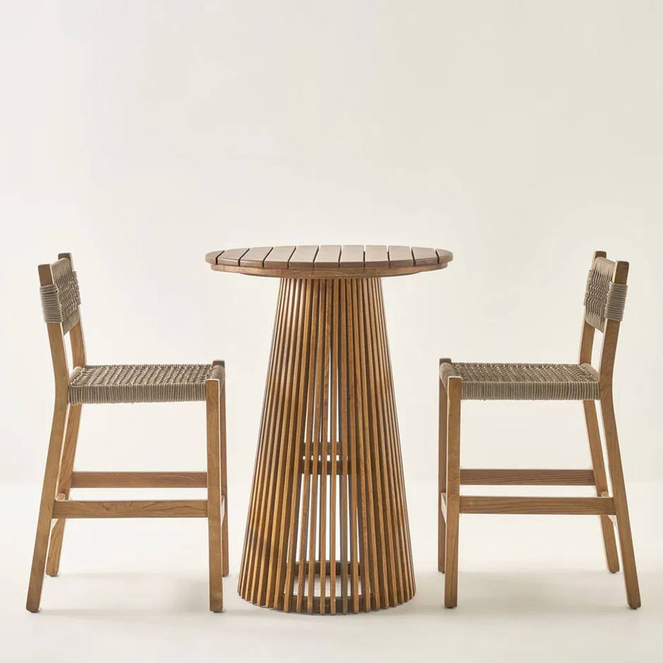 ชุดเฟอร์นิเจอร์บาร์สำหรับสวนกลางแจ้ง ชุดเก้าอี้บาร์ไม้สักทันสมัยพร้อมโต๊ะสูง สำหรับรับประทานอาหาร โรงแรม อพาร์ทเมนท์ วิลล่า - เซเลน่า