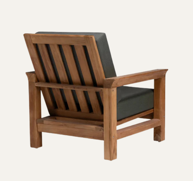 เก้าอี้โซฟาเดี่ยวสำหรับสวนภายนอก ทำจากไม้สักแท้ พร้อมเบาะผ้าหนานุ่มถอดซักได้ สไตล์ทรอปิคอล งานแฮนด์เมด เหมาะสำหรับนั่งพักผ่อนในลานบ้าน