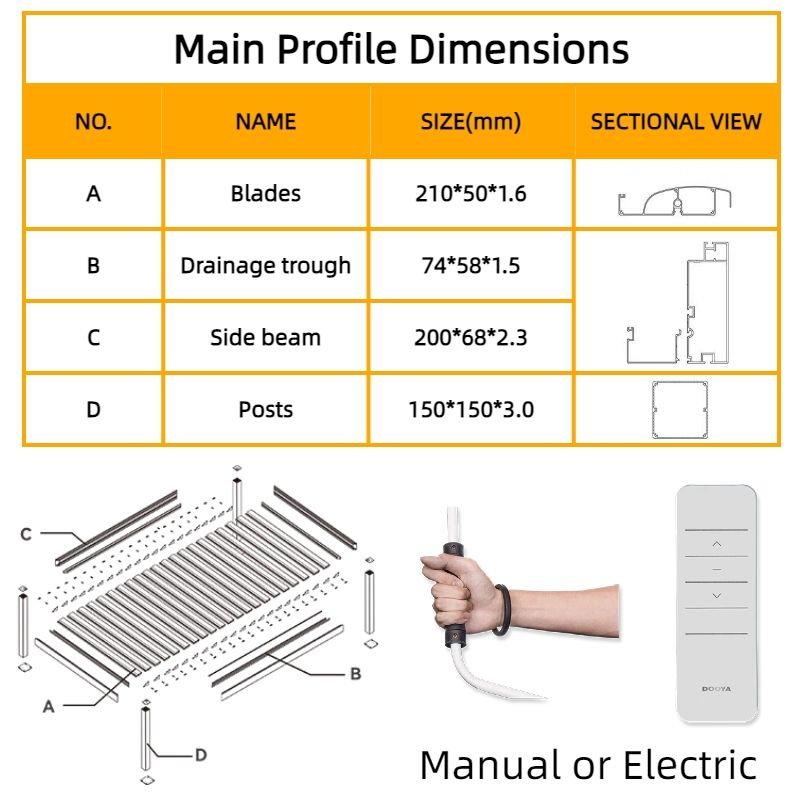 ชื่อสินค้า:เพอร์โกล่าอะลูมิเนียมแบบบานเกล็ดปรับได้ด้วยมอเตอร์ ควบคุมด้วยระบบไบโอคลิเมติก