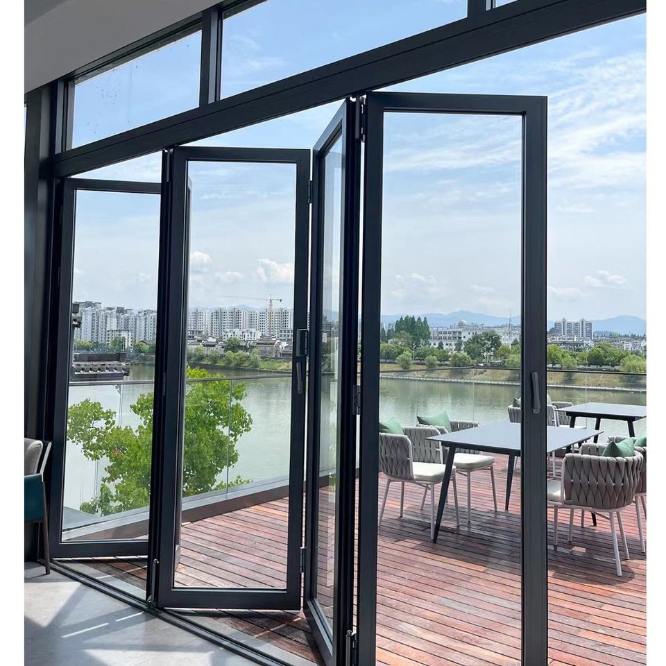 ประตูพับสีดำแผงกระจกกลางแจ้ง