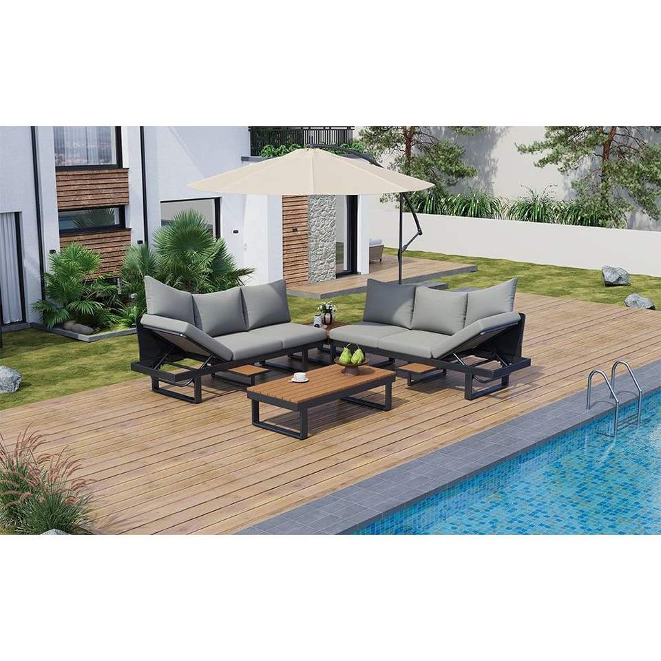 ชุดโซฟากลางแจ้งสีเทาสำหรับสวนปรับเอนได้สำหรับสนามหลังบ้านระเบียงสระว่ายน้ำ