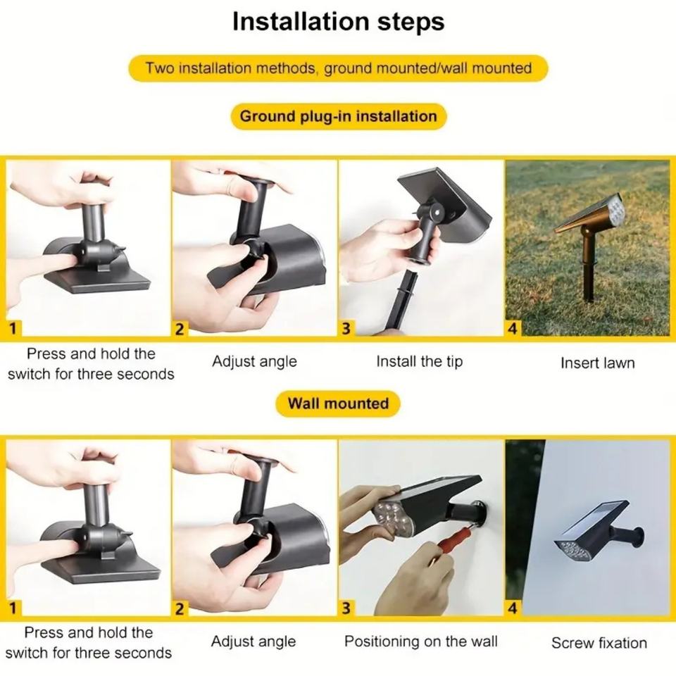 ไฟสปอตไลท์ติดพื้นกลางแจ้ง สีขาว แสงวอร์มไวท์ RGB พลังงานแสงอาทิตย์ สำหรับสวน ต้นไม้ สนามหญ้า บ้านพักตากอากาศ