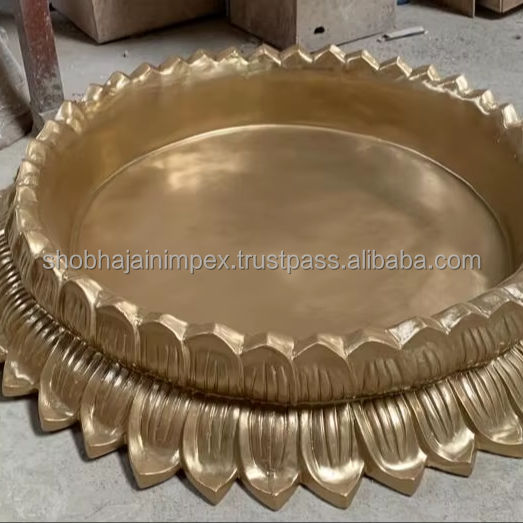 อ่างตกแต่งแบบดั้งเดิมทำจากไฟเบอร์กลาสสีทองสำหรับพิธีฮัลดีกลางแจ้งในงานแต่งงานเจ้าสาว