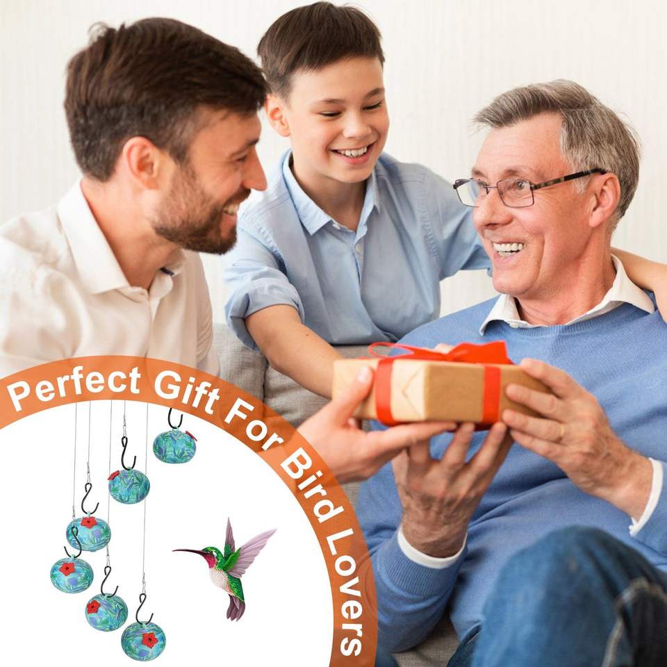 ที่ให้อาหารนกฮัมมิงเบิร์ดแบบแขวนกลางแจ้งพร้อมกระดิ่งลม ป้องกันมดและผึ้ง ตกแต่งสวนสวยสำหรับตกแต่งลานบ้านและสวนหลังบ้าน