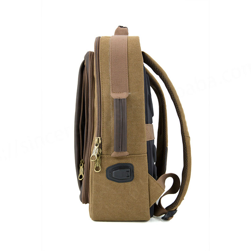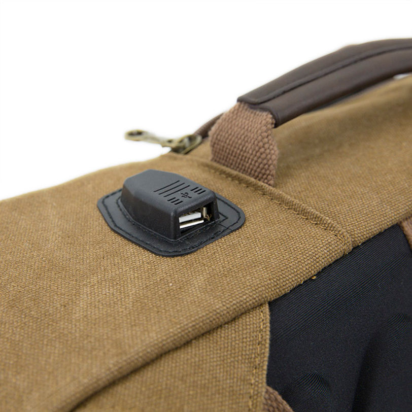 กระเป๋าเป้สะพายหลังผ้าแคนวาสกันขโมยสไตล์วินเทจสำหรับเดินป่าและตั้งแคมป์กลางแจ้ง พร้อมช่องใส่แล็ปท็อป ซิปปิด สำหรับผู้ชาย แบบสั่งทำพิเศษ ช่องเสียบ USB วัสดุโพลีเอสเตอร์