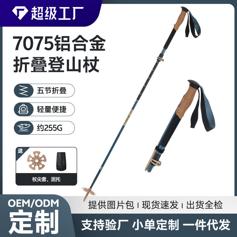 ไม้เท้าเดินป่าแบบพับได้ 5 ท่อน ทำจากอลูมิเนียมอัลลอย 7075 ป้องกันการลื่น พร้อมระบบล็อคภายนอก