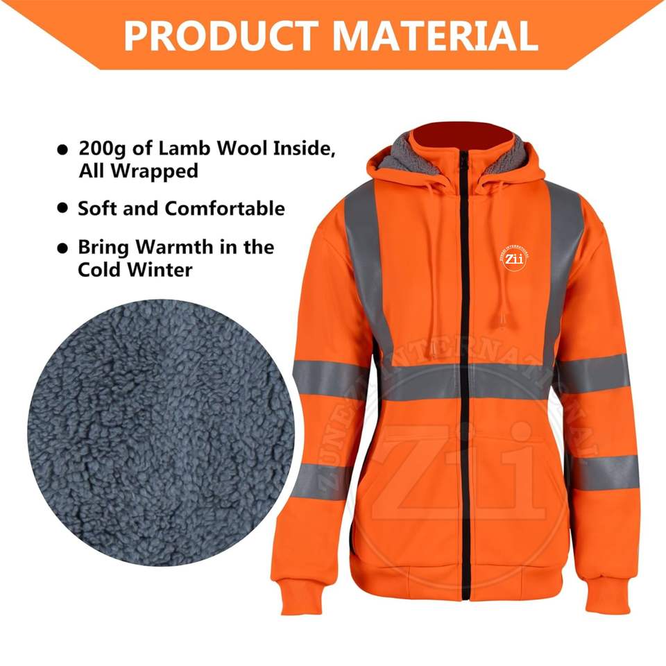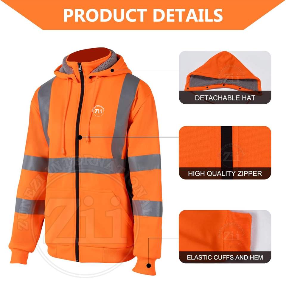 เสื้อฮู้ดกลางแจ้งแขนยาวเสื้อกันหนาวขนแกะมีฮู้ดสีตัดกันมีแถบสะท้อนแสงรูดซิปขึ้น100% แจ็คเก็ตขนแกะโพลีเอสเตอร์